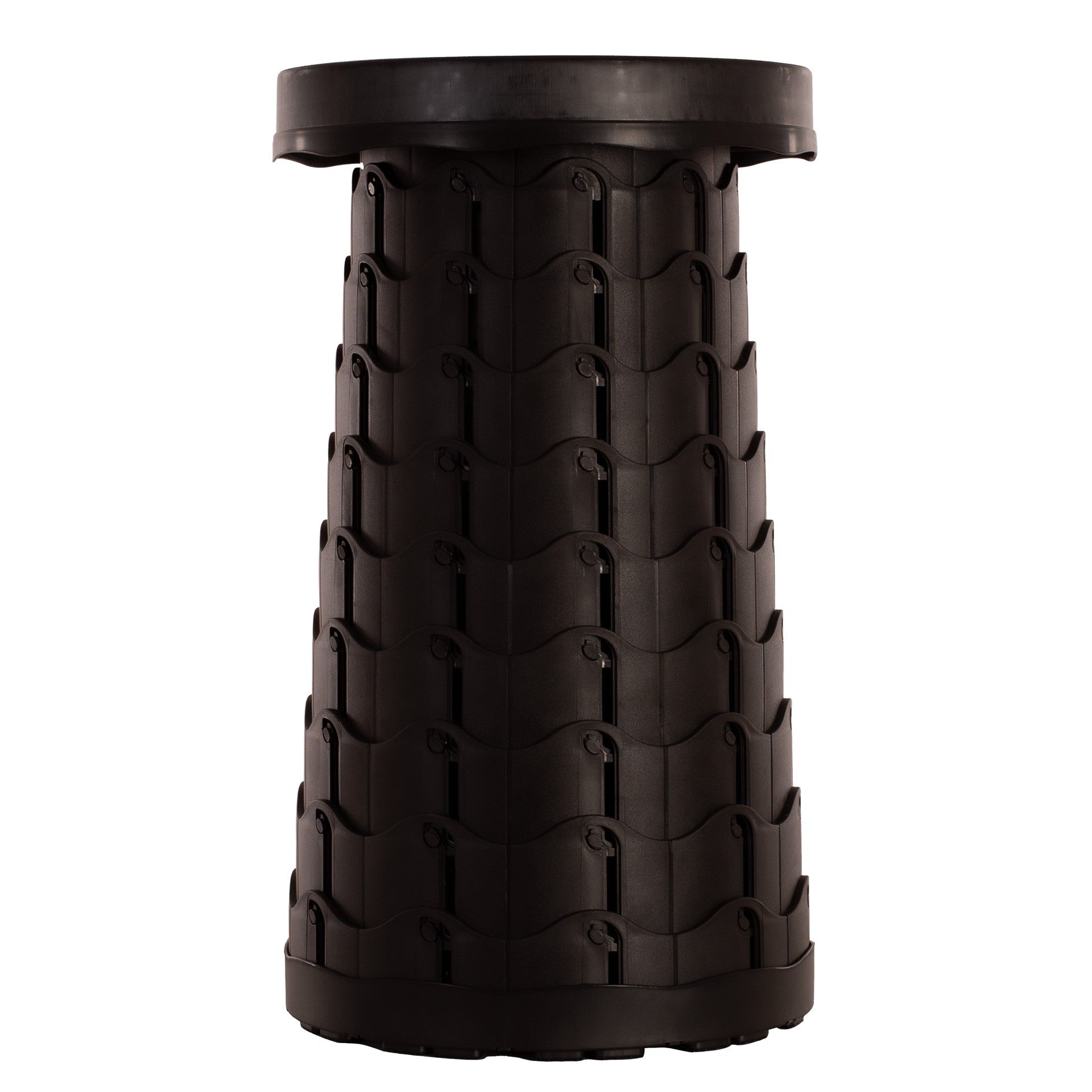 Asiento plegable con un diseño telescópico que se ajusta a la altura deseada de cada usuario. Compacto y resistente. Fácil de transportar gracias a su plegado y asa. COMO UTILIZAR 1. Con ambas manos metidas en la parte superior e inferior respectivamente estirar a la altura deseada mediante agujero telescópico, . 2. Gire en sentido contrario a las agujas del reloj para fijar el taburete (almacenamiento giratorio en el sentido de las agujas del reloj). 3. Complete el movimiento y utilízalo después de nivelarlo. Diámetro del asiento (base y parte superior): 24,5cm. Altura máxima del asiento: 44,5cm. Altura plegado: 7cm.