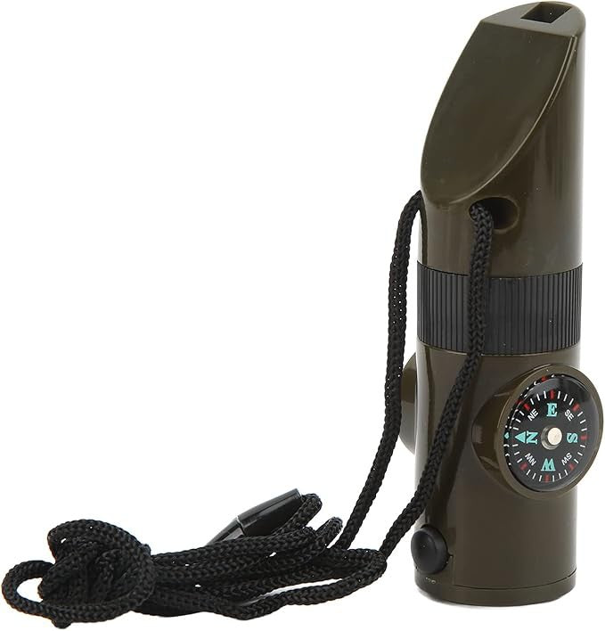 7 herramientas en un mismo producto: silbato, linterna, brújula, lupa, termómetro, espejo de señales y contenedor de almacenamiento. Esta brújula es el elemento perfecto para llevar en tus salidas por la naturaleza. Cuenta con cordón para poder llevarla al cuello y utilizarla de forma cómoda. Pequeña, compacta. Medida: 9,5 de largo y diámetro de 2,7cm aprox.
