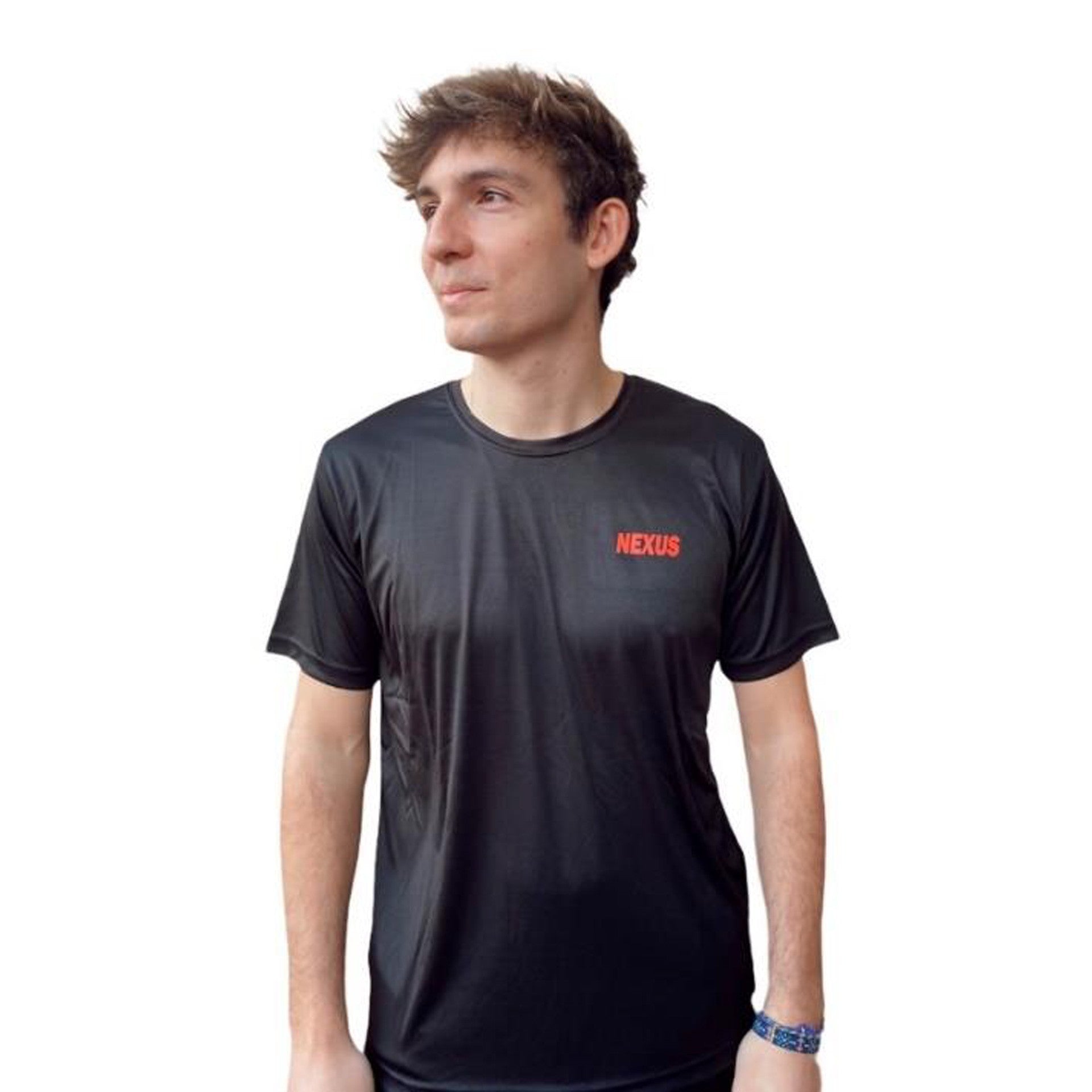 Camiseta de poliéster con diseño frontal y en la espalda. Fabricada en manga corta.