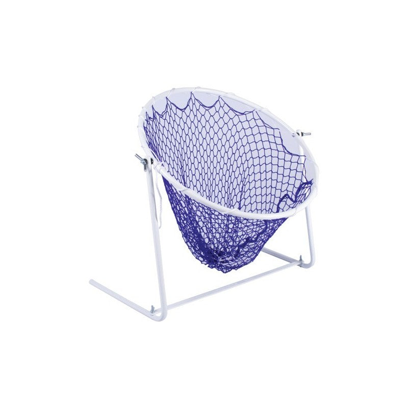 Canasta de juegos. Red con soporte metálico regulable en inclinación para uso como objetivo de lanzamientos diversos.