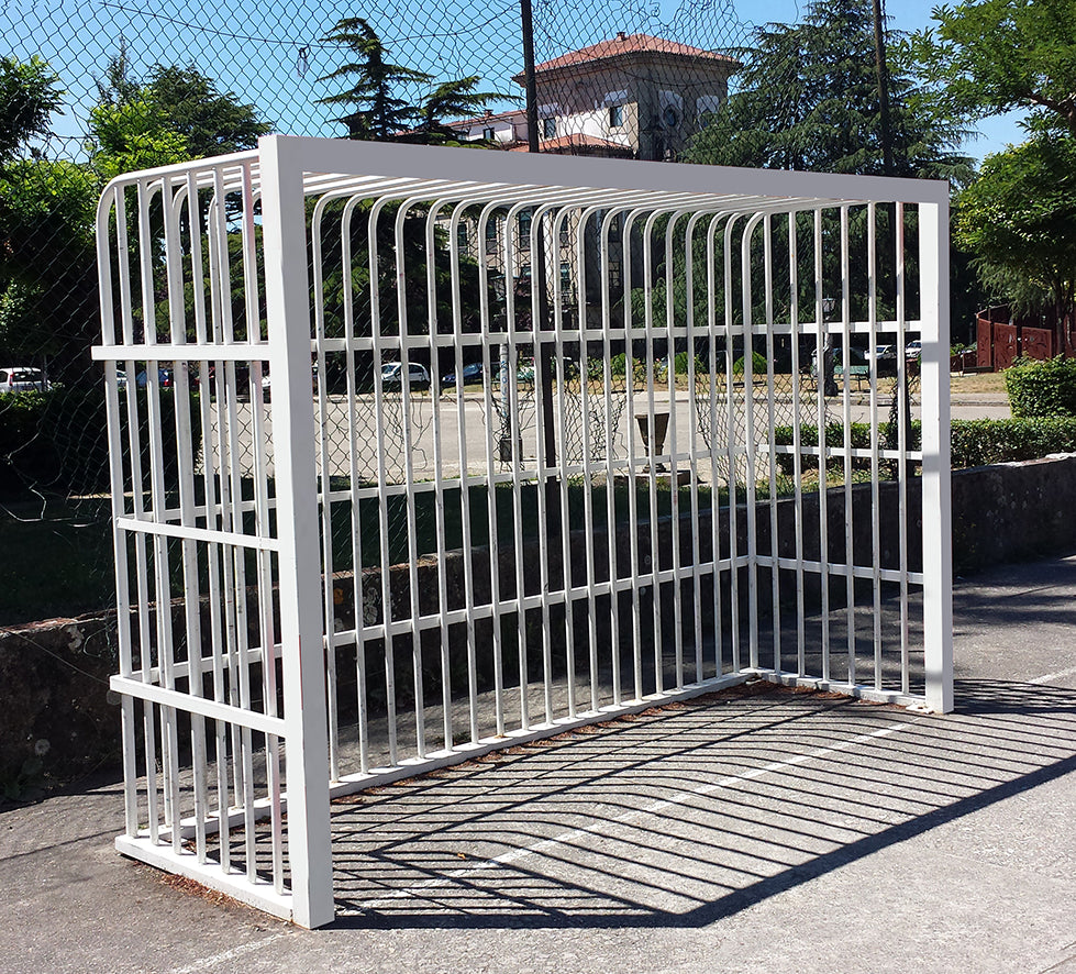 PRODUCCIÓN BAJO PEDIDO. ANCLAR SIEMPRE AL SUELO. Porterías que se suministran en una pieza con las dimensiones normativa FIFA de 3,00 x 2,00 mts interiores, formado por marco postes larguero de sección de 80x80 mm, arquillos metálicos reforzados de sección de 25 mm que hacen la función de red y base rectangular de seccion 80x40 mm con 4 pletinas con agujeros de 1,5 mm para obligatoriamente poder amarrar la portería al suelo. * Portes no incluidos. Posibilidad de pintado en color gris, verde, blanco. consulte otras opciones. PORTES DEBIDOS, CONSULTAR. Peso por portería: 170kg aprox.
