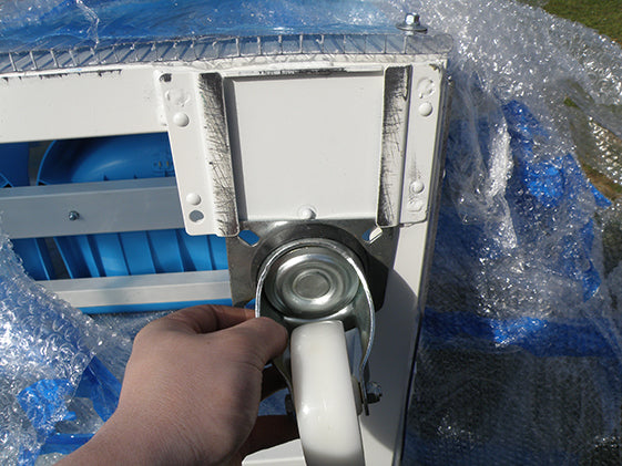 Se trata de un articulo opcional que consiste en 4 ruedas giratorias con freno de quita y pon colocadas mediante guía en pletinas situadas en los bajos del propio banquillo, es importante saber si se quieren con ellas para precisamente colocarle dicha pletina que no llevaría en caso de no ser solicitadas las ruedas.