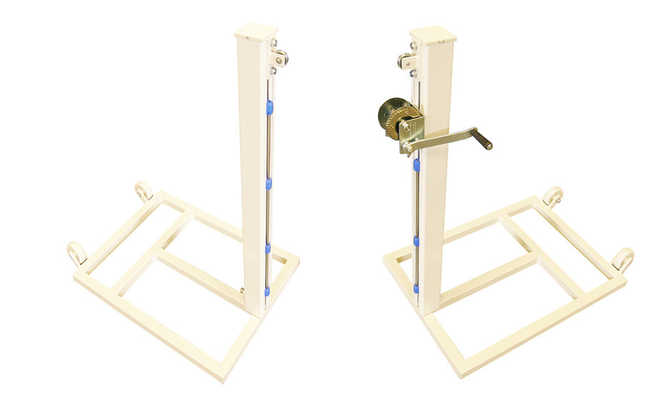 Juego de postes fabricados en aluminio nervado de sección sección cuadrada 80x80mm. Diseñados para anclar a una base metálica trasladable provista de 2 ruedas de nylon fijas. Dicha base de medidas 80x60cm y fabricada en tubo de acero de sección 40x40x2mm. Permite la colocación su parte posterior de un cajón de contrapeso para evitar su vuelco. El peso aproximado de contrapeso debería ser de unos 60/80 kg. Incluye carraca tensora para poder tensar el cable de la red que se quiera colocar.