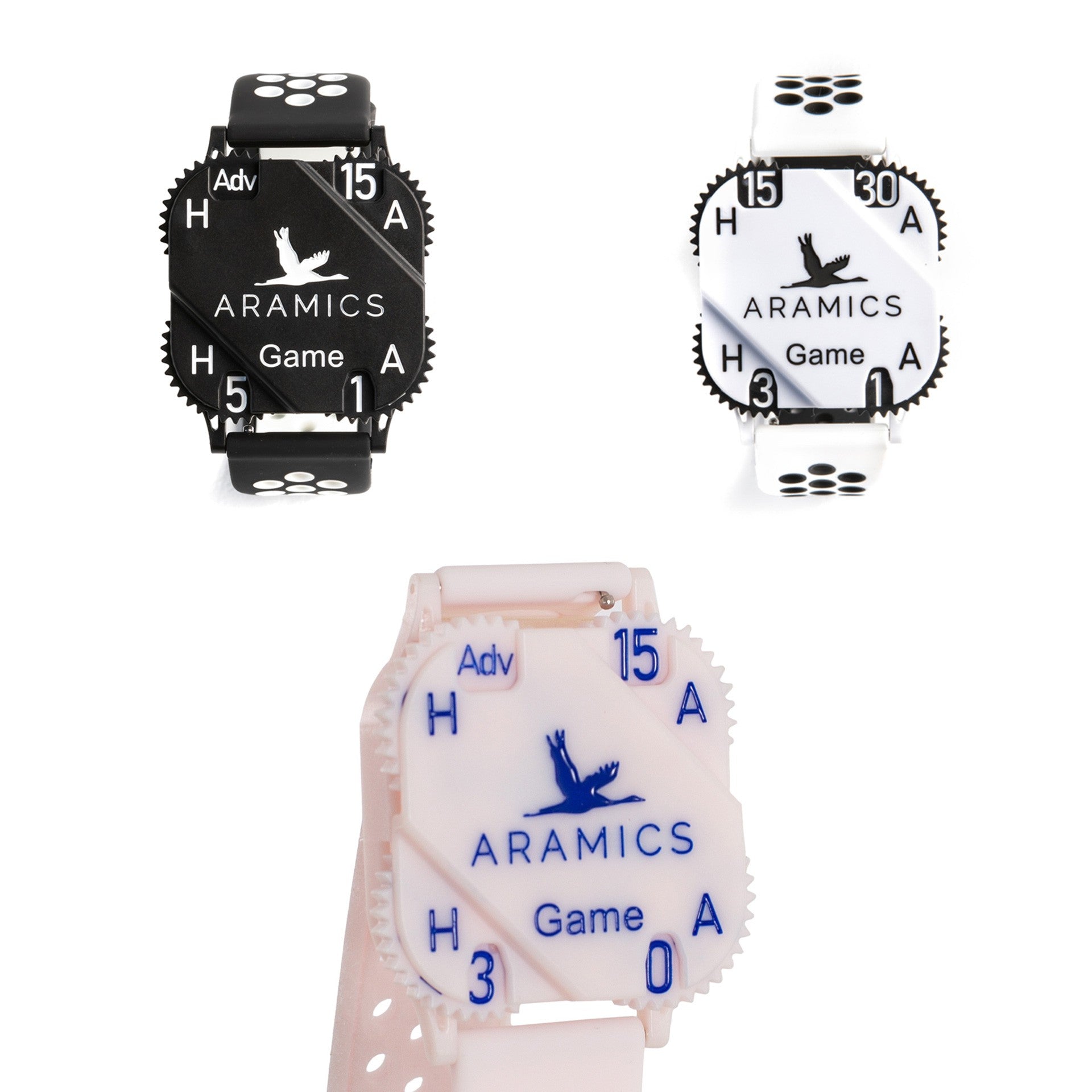 Aramics Score es una calculadora mecánica de puntuación para pádel y tenis. Con la ayuda de los engranajes, puede desplazarse fácilmente hacia adelante en la puntuación después de cada bola y juego ganados. Es simple y fácil de usar, ¡no más dudas sobre la puntuación! Fabricada en plástico ABS. El brazalete incluido está hecho de silicona con orificios moldeados que dejan pasar el aire. La hebilla de alfiler facilita el ajuste del tamaño a su muñeca. Tamaño: 38x38x12mm, peso aproximado 20gr La pulsera está hecha de silicona y es muy fácil de cambiar. Material: ABS Instrucciones de cuidado: seque o lave con agua tibia y jabón, asegúrese de dejar que se seque bien antes de usar