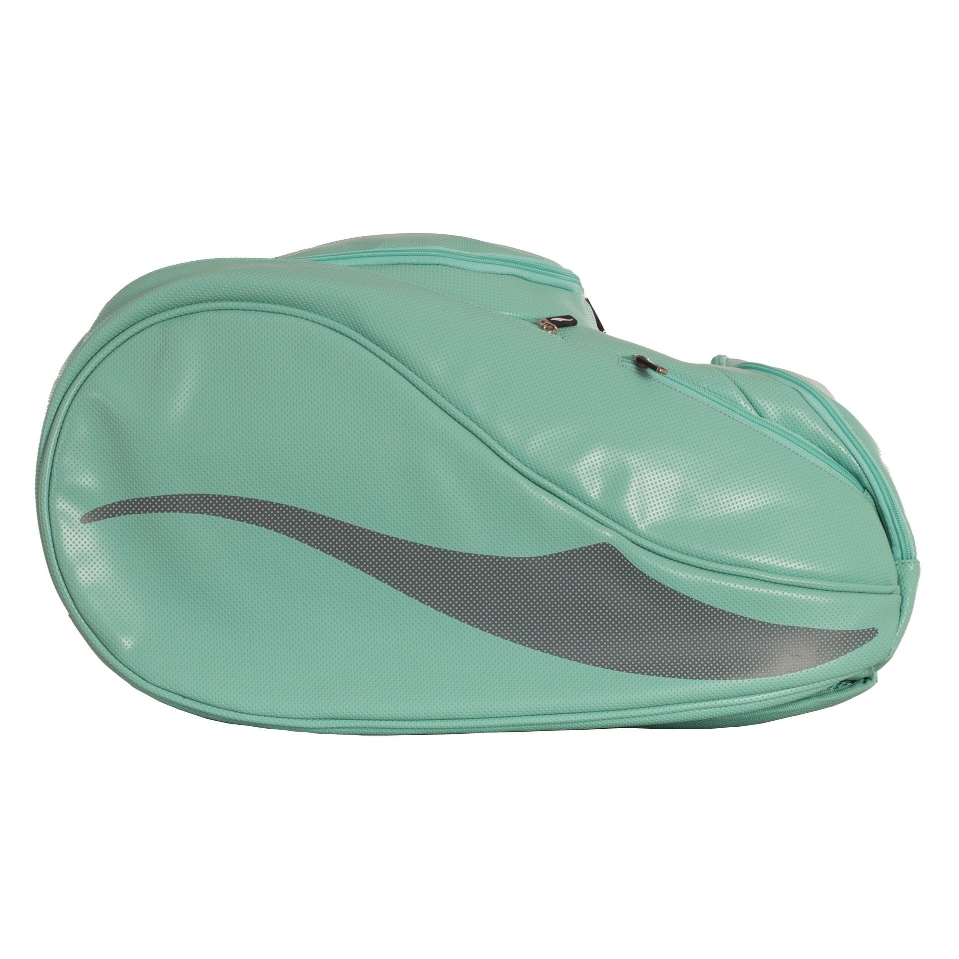 Paletero de poliuretano con un excelente acabado y diseñado en colores tendencia. Cuenta con varios compartimentos para guardar todo lo que necesites en tus días de entrenamiento y partido. - Compartimento principal para guardar ropa, accesorios y lo que necesites. - Zapatillero transpirable también en la parte superior del paletero. - 2 compartimentos laterales con cremallera para palas. - 2 compartimentos laterales con cremallera más pequeños para enseres personales como llaves, móvil o cartera. Cuenta con asas ajustables y acolchadas para un mayor confort a la hora de su transporte. También cuenta con asa de mano. Medidas: 58x34x31cm.