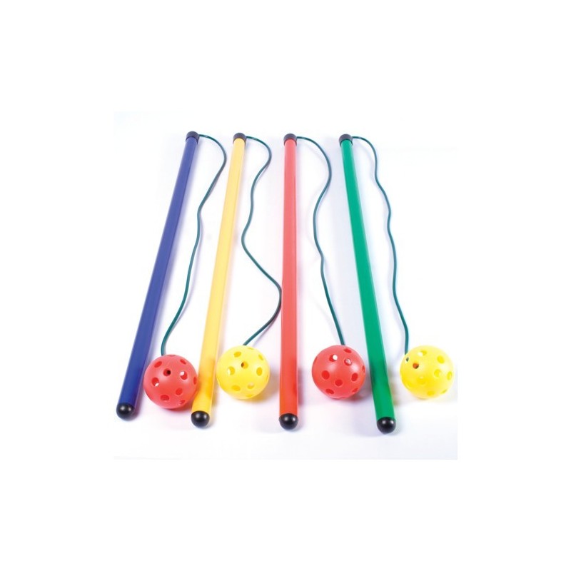 Pelota perforada con mango en PVC. Mejora la habilidad y sincronización de movimientos.