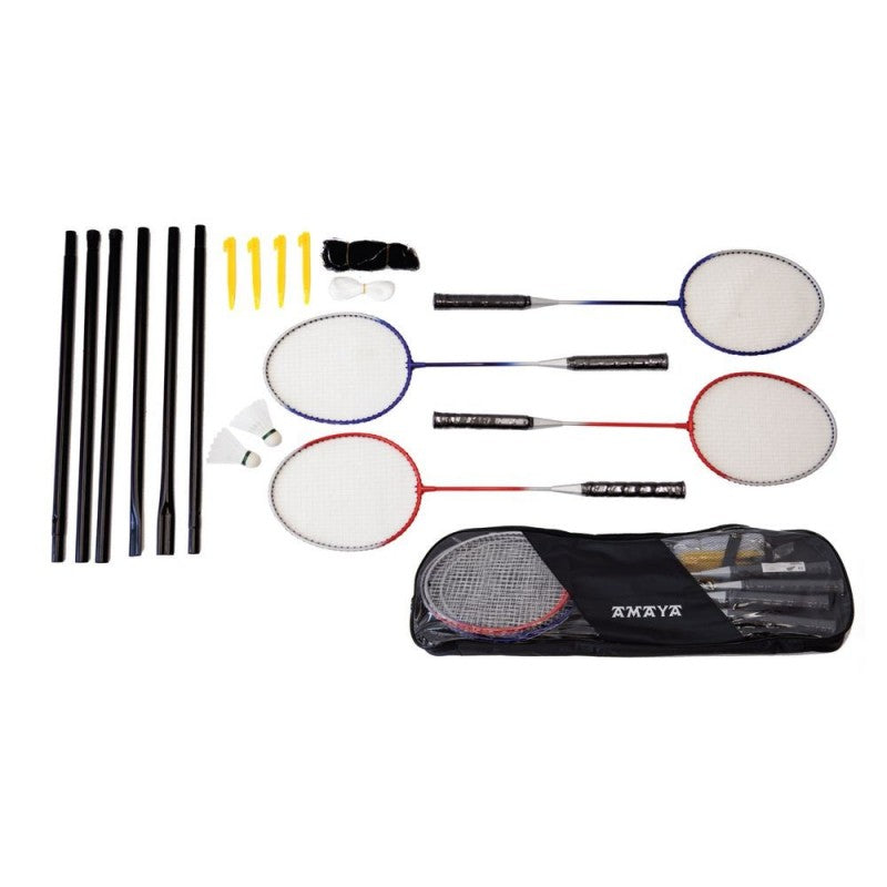 Set 4 raquetas de badminton con postes, red, 2 volantes y bolso.