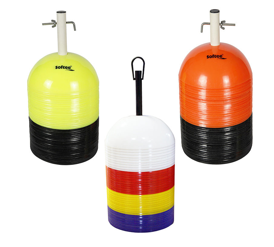 Set 40 conos chinos rígidos delimitador de entrenamientos y circuitos. Indicado para marcar zonas de ejercicios. 10 unidades por color. Diámetro: 20cm. Altura:7cm. Medidas: 19x39,5cm.