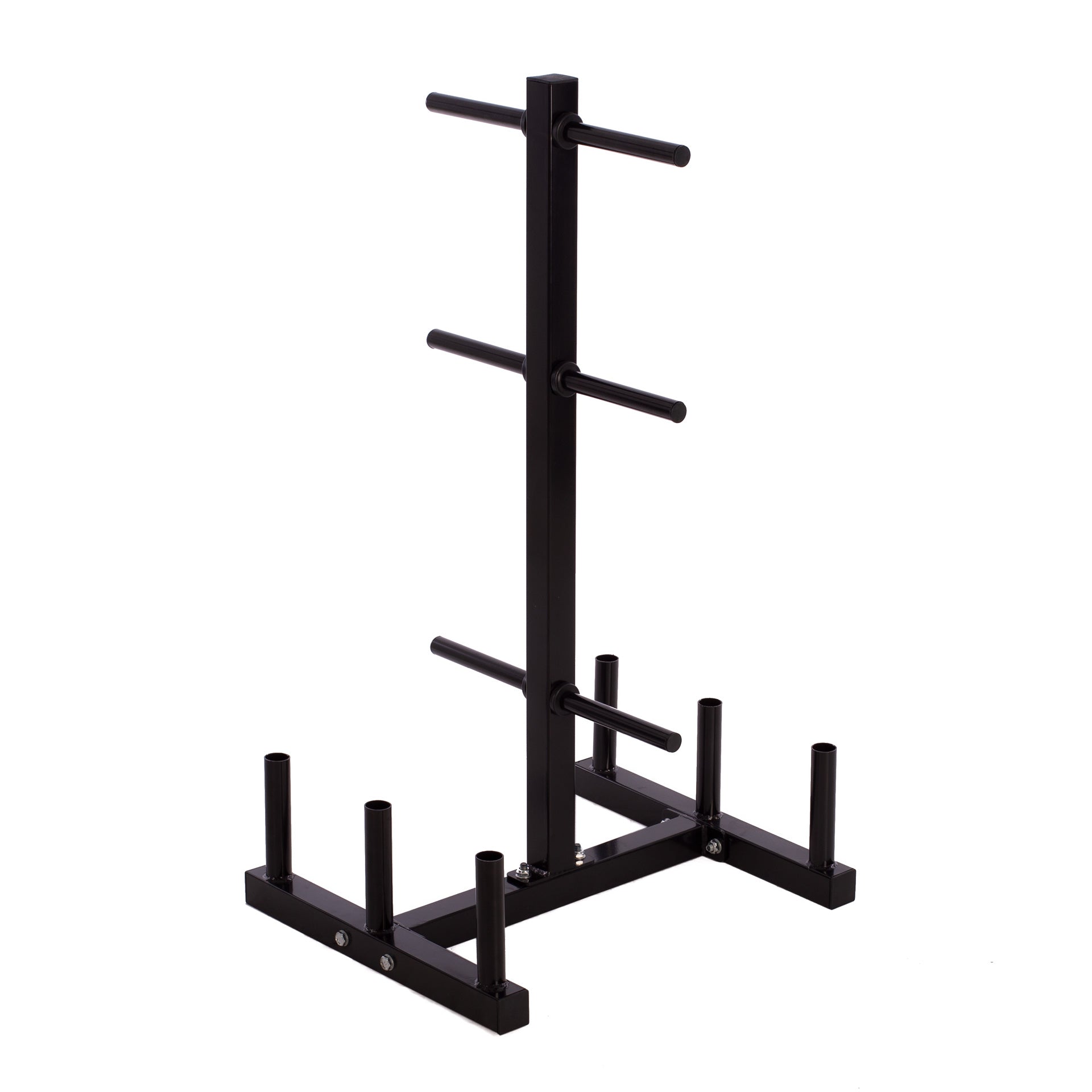 Soporte vertical diseñado especialmente para mantener tu material organizado y almacenado en un espacio reducido. Fabricado con patas de goma antideslizante. Base: 50 x 60 cm. Altura: 105 cm. Dimensión soporte discos: 20 cm. Diámetro: 30mm. 6 soportes. Dimensión soporte barras: 15 cm. Diámetro: 30mm. 6 barras.