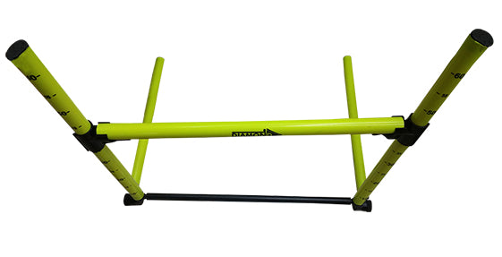 Valla plegable para facilitar su transporte, ligera. Regulable en altura hasta 60cm en función del entrenamiento que quieras realizar. Ofrece una gran estabilidad. Medidas: 68x74x61cm.